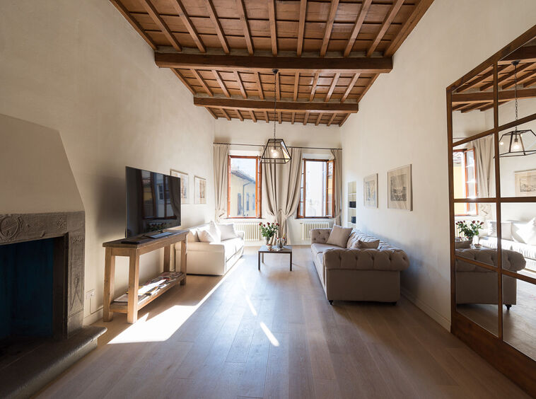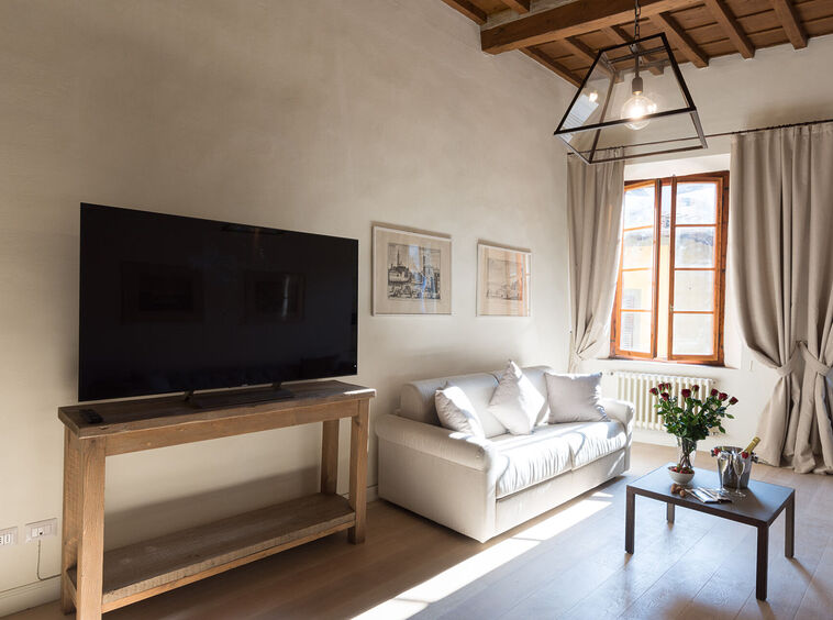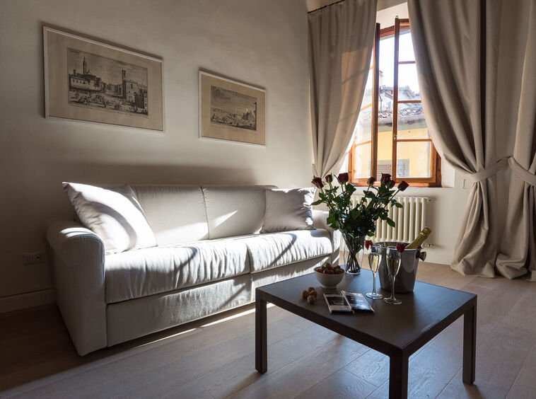 Il soggiorno, affaccia sulla strada e si gode anche di uno scorcio di Palazzo Pitti.